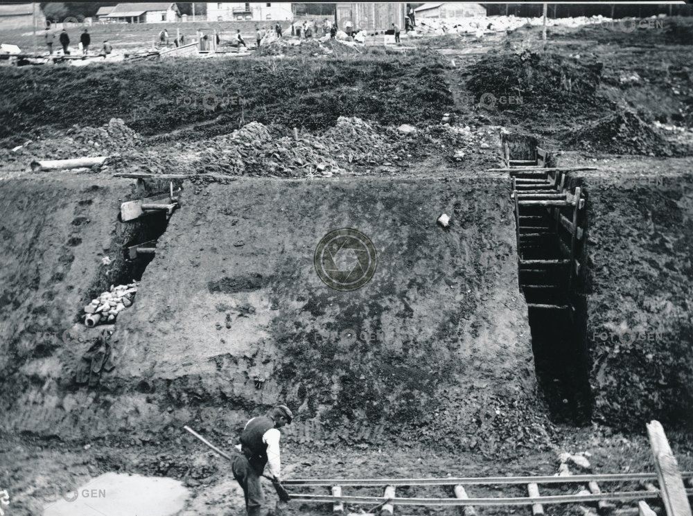 budování building construction dam dělníci event Luhačovice místopis práce přehrada reservoir stavba stavební technika topography událost vodní nádrž výstavba work workers Zlínský kraj