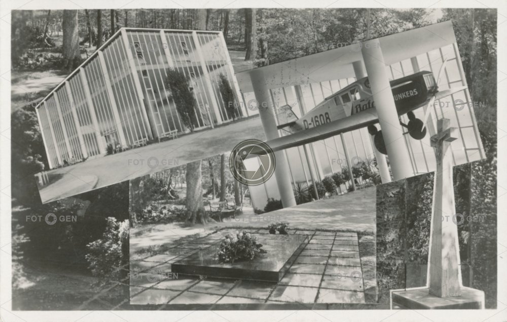1941 airplane collage cross F 13 forest cemetery grave hrob Junkers koláž kříž Lesní hřbitov letadlo memorial místopis památník resting-place sepulcher tomb topography Zlín