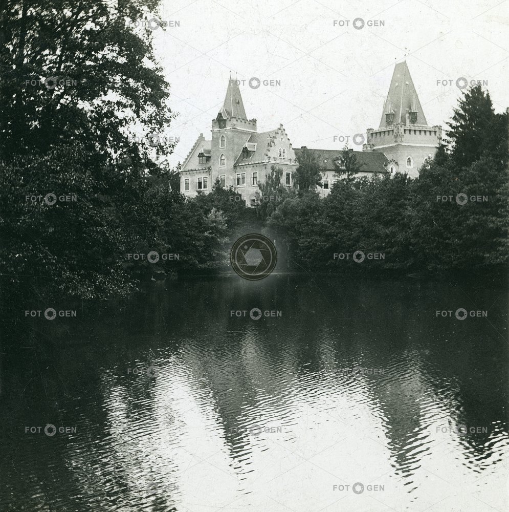 Zámek Červený Hrádek, celkový pohled od rybníka,  polovina stereofotografie Autor: Neznámý