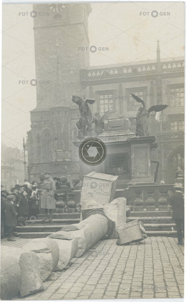 1918 alive anděl angel City Hall column event Mariánský sloup místopis Old Town Old Town Square Prague Praha radnice sloup Staré Město Staromák Staroměstská radnice Staroměstské náměstí topography událost živá