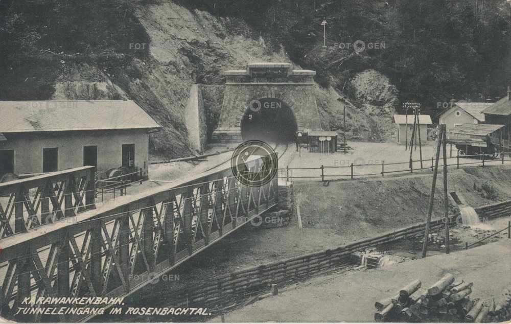 1915 Austria Ausztria Bělák Beljak bridge Brücke doprava dráha Gebirge Góry hegyek híd hory Karavanky Karawanken Kärnten Koroška Korutansko Korutany místopis most mountains Österreich Rakousko Rosenbach řeka topography transport trať tunel tunnel viadukt Villach železnice železniční