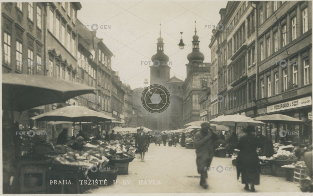 1931 alive bazilika Havelský trh Haveslká chrám church kostel market market place místopis Old Town Prague Praha slunečník Staré Město sv. Havla temple topography trh tržiště tržnice Vegetable Market Zelný trh živá