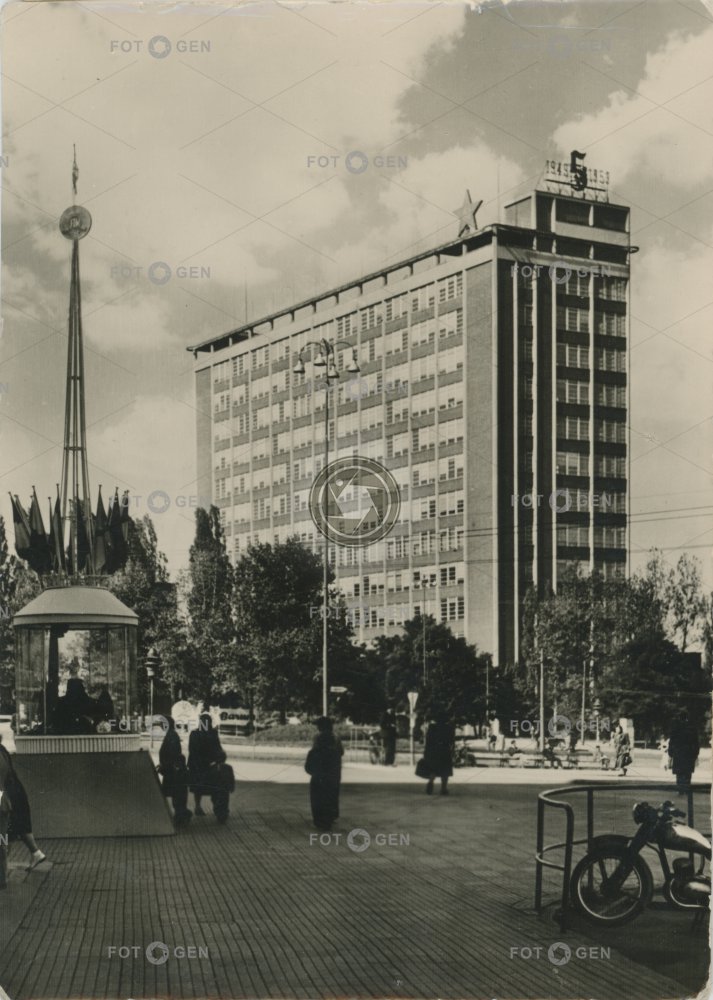 1950-1959 1953 1958 21. administrativní budova alive Baťa's skyscraper Baťův mrakodrap communism factory Gottwaldov jednadvacítka komunismus kraj místopis mrakodrap náměstí pouliční ruch skyscraper square street traffic Svit topography továrna trolejbus Zlín Zlínský živá