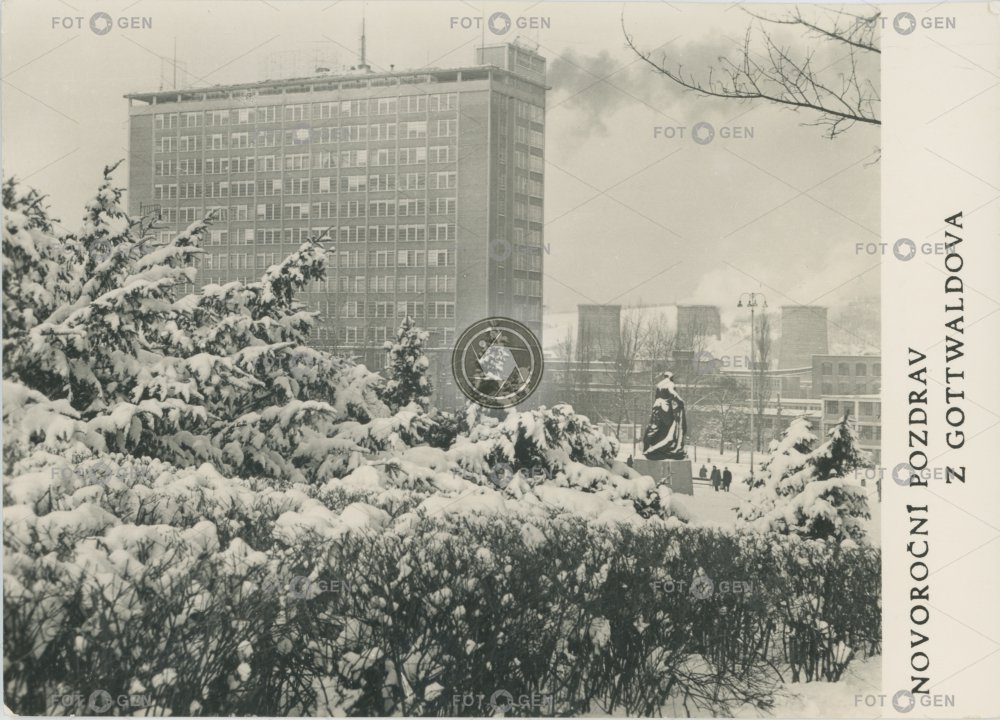 1960-1969 1965 21. administrativní budova Baťa's skyscraper Baťův mrakodrap Gottwaldov jednadvacítka kraj místopis mrakodrap office building skyscraper sněžení sníh snow topography winter zima Zlín Zlínský