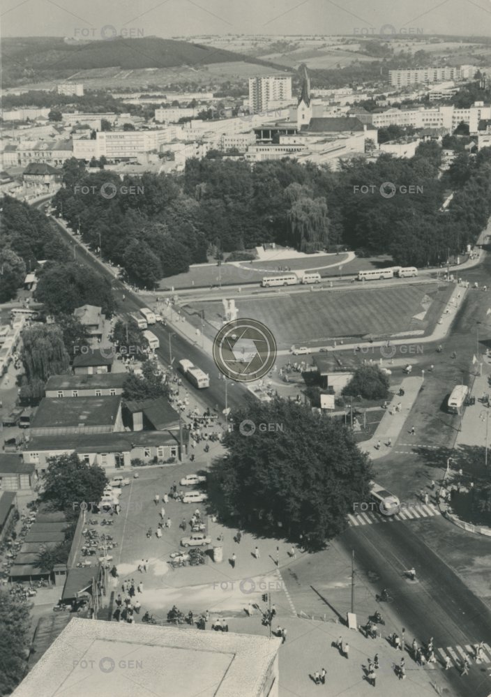1960-1969 1967 alive autobus benzinka benzinová pumpa bus celkový gas station Gottwaldov Komenského park kraj místopis panorama panorama view panoramatická park topography Zlín Zlínský živá