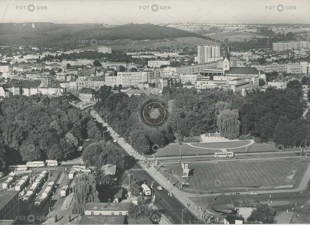 1960-1969 1965 autobusové benzinka bus station celkový čerpací stanice gas station Gottwaldov Komenského kraj místopis nádraží panorama panorama view park topography Zlín Zlínský