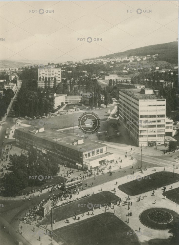 alive bus department store Gottwaldov kraj Masarykovy místopis náměstí neexistující neexistující budova neexistující objekt neexistující stavba non-existent non-existent building nonexistent building obchodní dům panorama panorama view panoramatická Prior Předvoj square store školy topography tržnice Zlín Zlínský živá