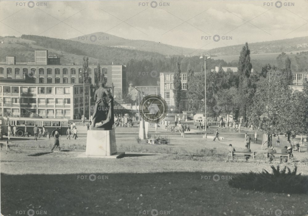 1960-1969 1965 alive Baťovy závody communism factory Gottwaldov komunismus koželuh kraj místopis náměstí náměstí Práce práce sculpture socha square statue topography továrna Zlín Zlínský živá