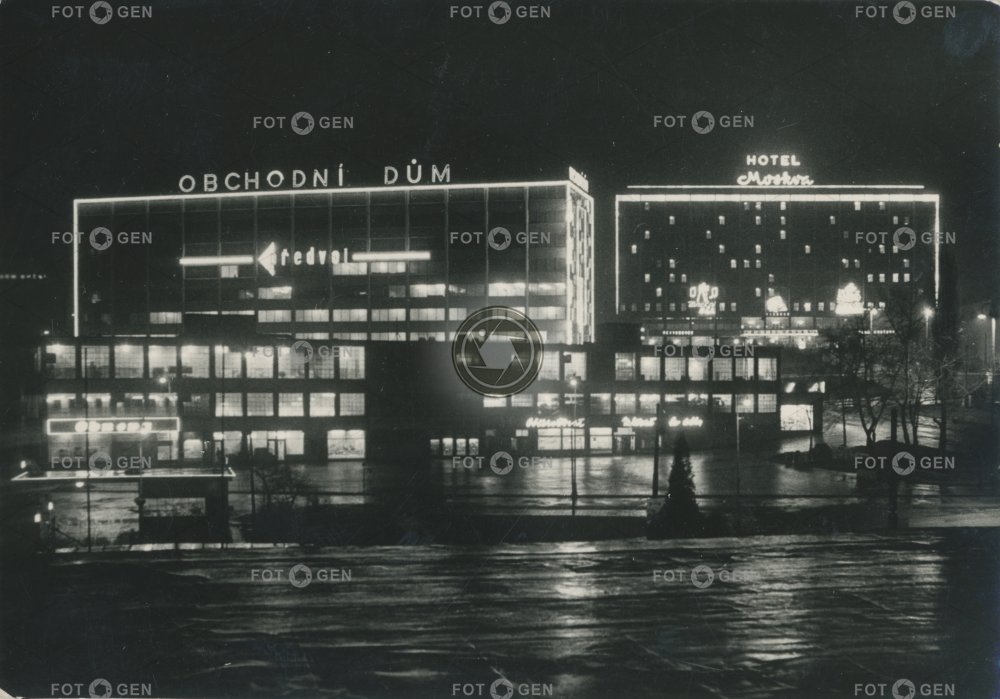 1960-1969 1962 bookstore Gottwaldov hotel kraj místopis Moskva neon lights neony night noc noční obchodní dům Prior Předvoj shopping center topography tržnice Zlín Zlínský