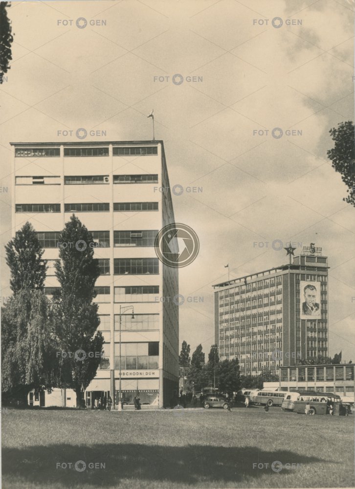 1950-1959 1954 21. administrativní budova alive autobus Baťa's skyscraper Baťův mrakodrap bus communism department store Gottwald Gottwaldov jednadvacítka komunismus kraj místopis mrakodrap obchodní dům rudá hvězda skyscraper store Svit topography Zlín Zlínský živá