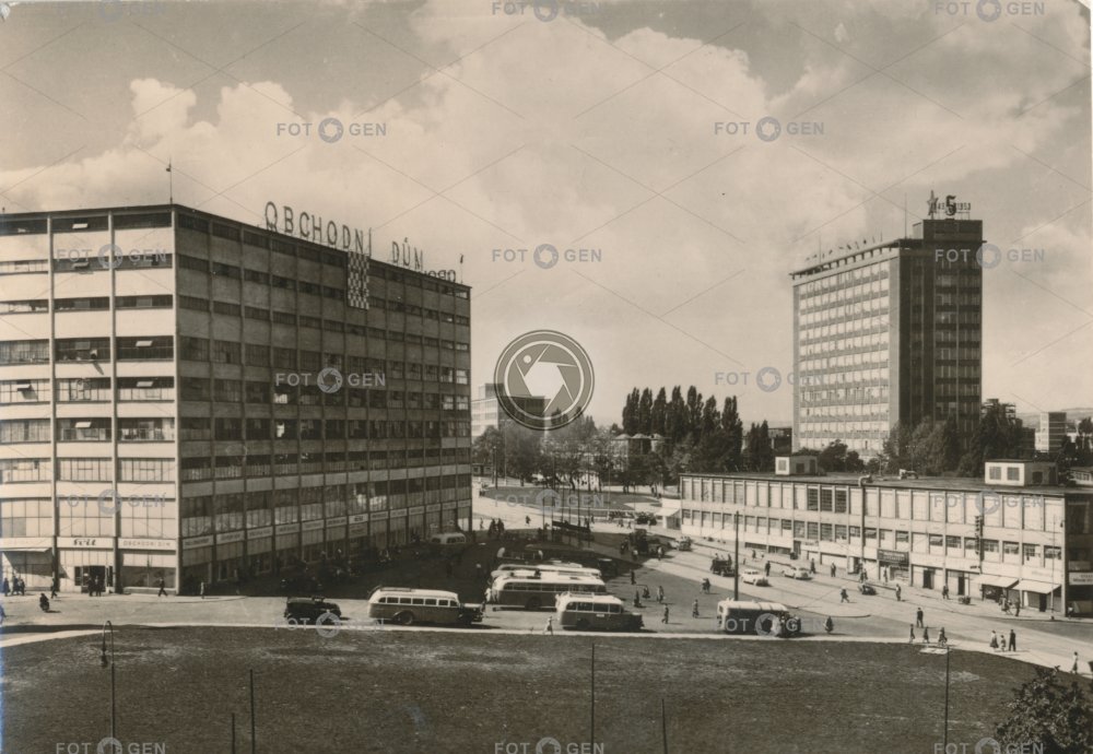1950-1959 1956 21. administrativní budova alive autobus Baťa's skyscraper Baťův mrakodrap bus department store Gottwaldov jednadvacítka kraj místopis mrakodrap obchodní dům Prior Předvoj shopping center store topography tržnice Zlín Zlínský živá