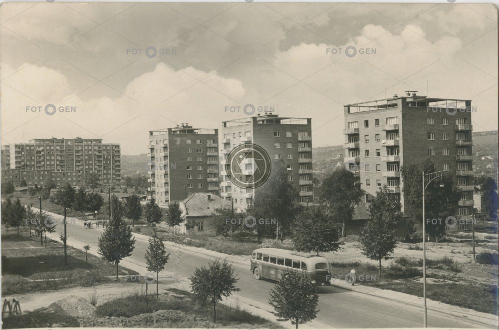 1950-1959 1951 architekt autobus bus bytové domy činžák Drofa Gottwaldov Housing estate kraj Leninova Miroslav Drofa místopis Morysovy domy sídliště Tomáše Bati topography Tower houses třída věžové domy Zlín Zlínský