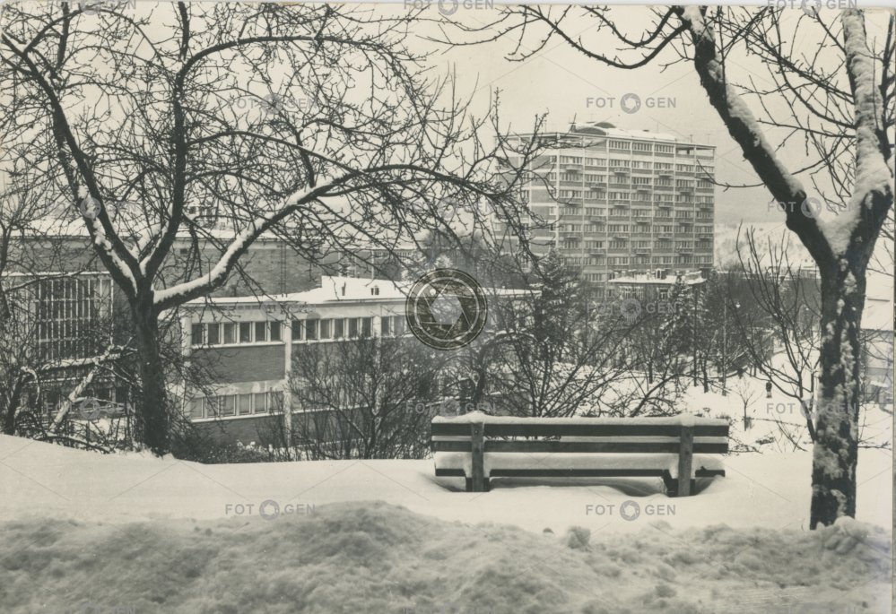 1960-1969 1968 collective house Gottwaldov Jiří Voženílek kolektivní dům koupaliště kraj krytý bazén lázně Městské lázně místopis sněžení sníh snow spa swimming bath topography Voženílek wells winter zima Zimní lázně Zlín Zlínský