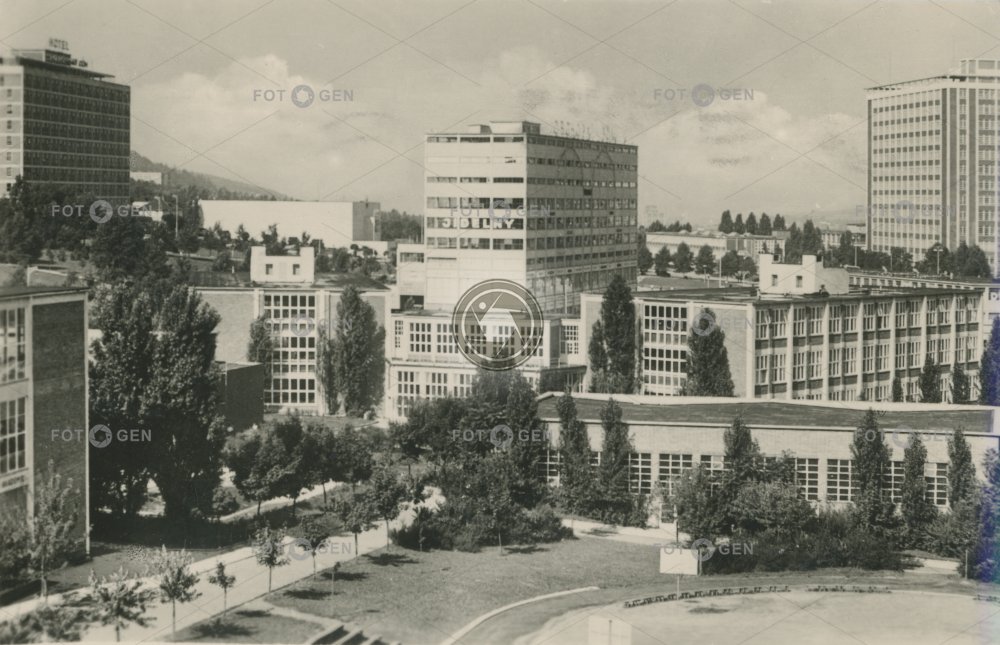 1940-1949 1949 Baťa's skyscraper Baťův mrakodrap celkový Gottwaldov hřiště kraj Masarykovy školy místopis mrakodrap neexistující neexistující budova neexistující objekt neexistující stavba non-existent non-existent building panorama playground skyscraper školy topography Zlín Zlínský