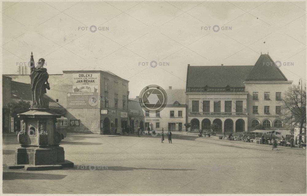 Florian Gottwaldov market Míru místopis náměstí Míru neexistující neexistující budova neexistující objekt neexistující stavba non-existent non-existent building obchod radnice sculpture socha Socha sv. Floriana square statue topography town hall trh trhovci tržiště tržnice Zlín