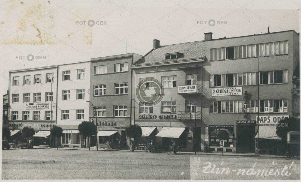 banka Slavia Gottwaldov kožešiny lékárna lékárník Míru místopis náměstí Míru obchod Oplatka Papš Pharmacy shop topography Zlín zubní lékař