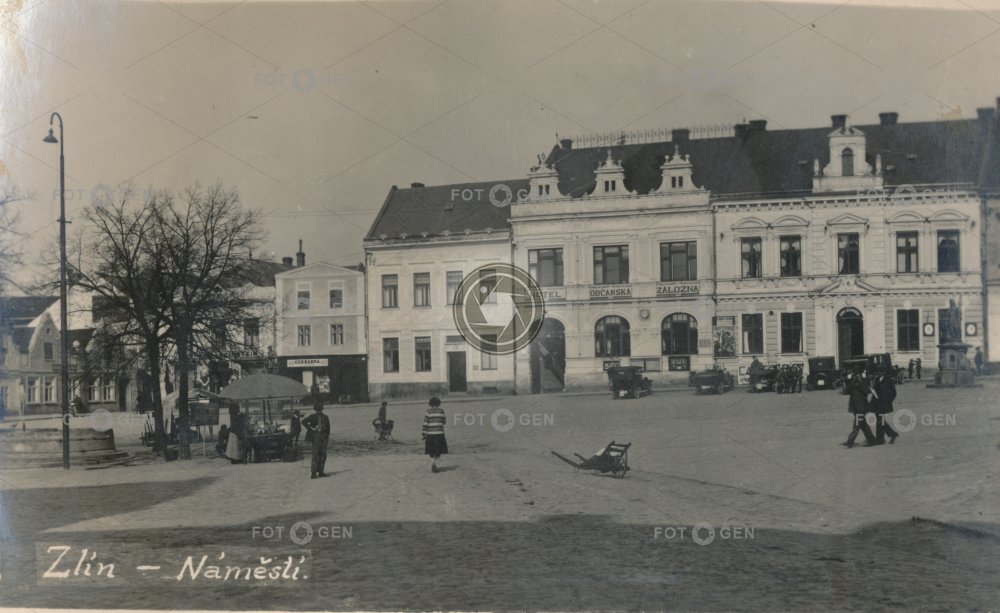 auto car Credit union hospoda hostinec hotel market místopis náměstí Míru pub topography trakař trh trhovci tržiště tržnice wheelbarrow záložna Zlín Zlínský kraj
