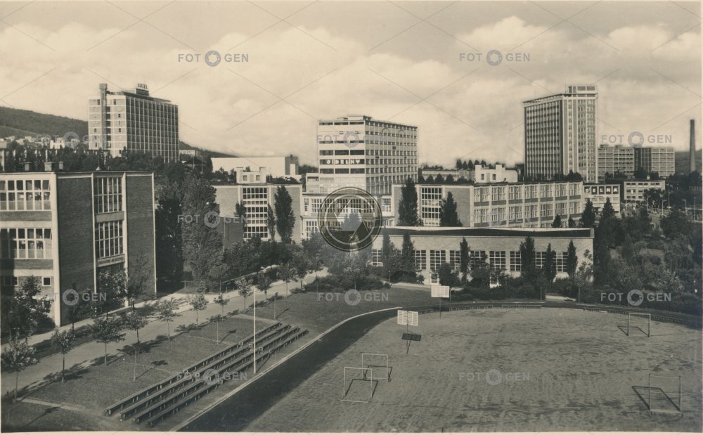 1940-1949 1944 21. administrativní budova Gottwaldov hřiště jednadvacítka kraj Masarykovy místopis Moskva mrakodrap neexistující neexistující budova neexistující objekt neexistující stavba non-existent nonexistent building obchodní dům playground school škola Školní školy topography Zlín Zlínský
