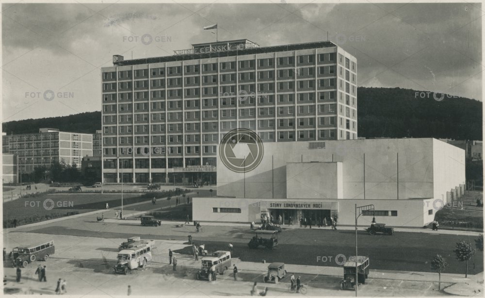 alive architect architekt auto autobus biograf bus car cinema hotel hotel Moskva kino Miroslav Lorenc místopis Moskva nádraží náměstí Práce parní válec railway station Společenský dům stanice station steam cylinder steam roller topography Velké kino zastávka Zlín živá