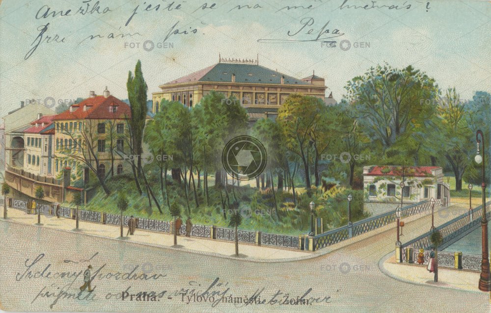 barevná colored drawing island kolorovaná kresba malba místopis ostrov painting palác Žofín Prague Praha Slovanský ostrov topography Tylovo Vojtěšská Žofín